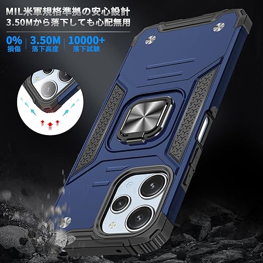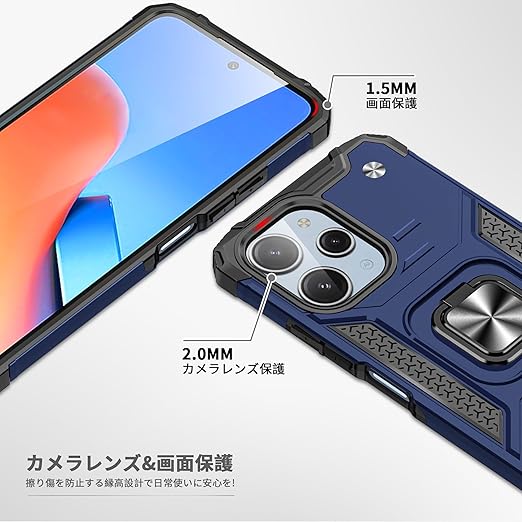 Xiaomi Redmi 12 5G/4G 用 ケース Redmi Note 12R 用 ケース リング付き 耐衝撃 米軍MIL規格取得 Redmi 12 5G/4G/Note 12R カバー レンズ保護 リングつき TPU+PC 指紋防止 車載ホルダー対応 スタンド機能 防塵 薄型 軽量 落下防止 擦り傷防止 青 C82-hm12 5g-04 a