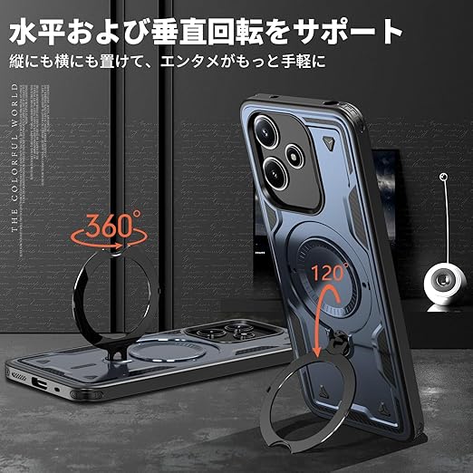 Xiaomi Redmi 12 5G 用 ケース 耐衝撃 スタンド付き Magnetic対応 Redmi 12 5G カバー リング TPU+PC ワイヤレス充電 米軍MIL規格取得 スタンド機能 (ブルー)117-XM125G-02 a
