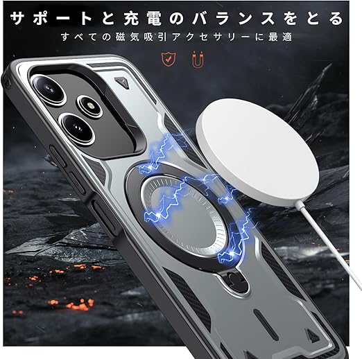 Xiaomi Redmi 12 5G 用 ケース 耐衝撃 スタンド付き Magnetic対応 Redmi 12 5G カバー リング TPU+PC ワイヤレス充電 米軍MIL規格取得 スタンド機能 (グレー)117-XM125G-07 a
