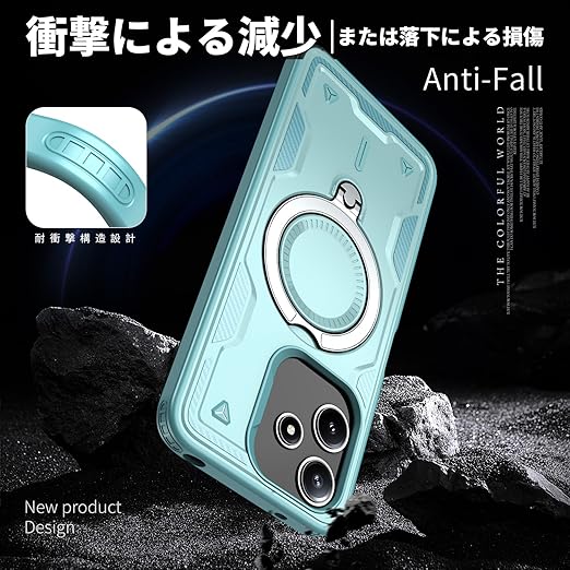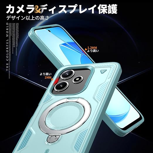 Xiaomi Redmi 12 5G 用 ケース 耐衝撃 スタンド付き Magnetic対応 Redmi 12 5G カバー リング TPU+PC ワイヤレス充電 米軍MIL規格取得 スタンド機能 (ティファニーブルー)117-XM125G-08 a