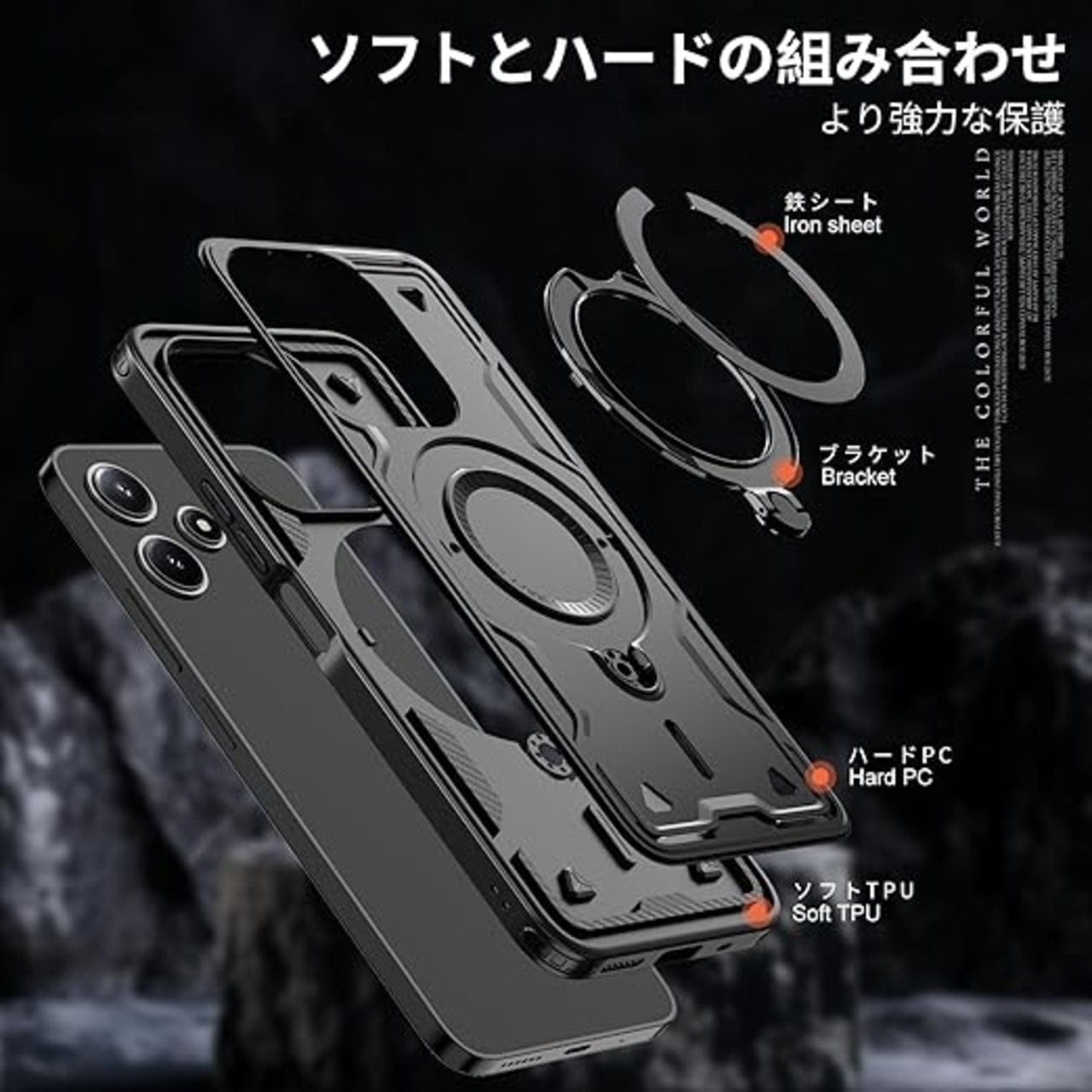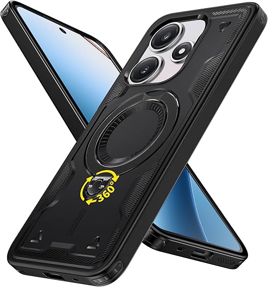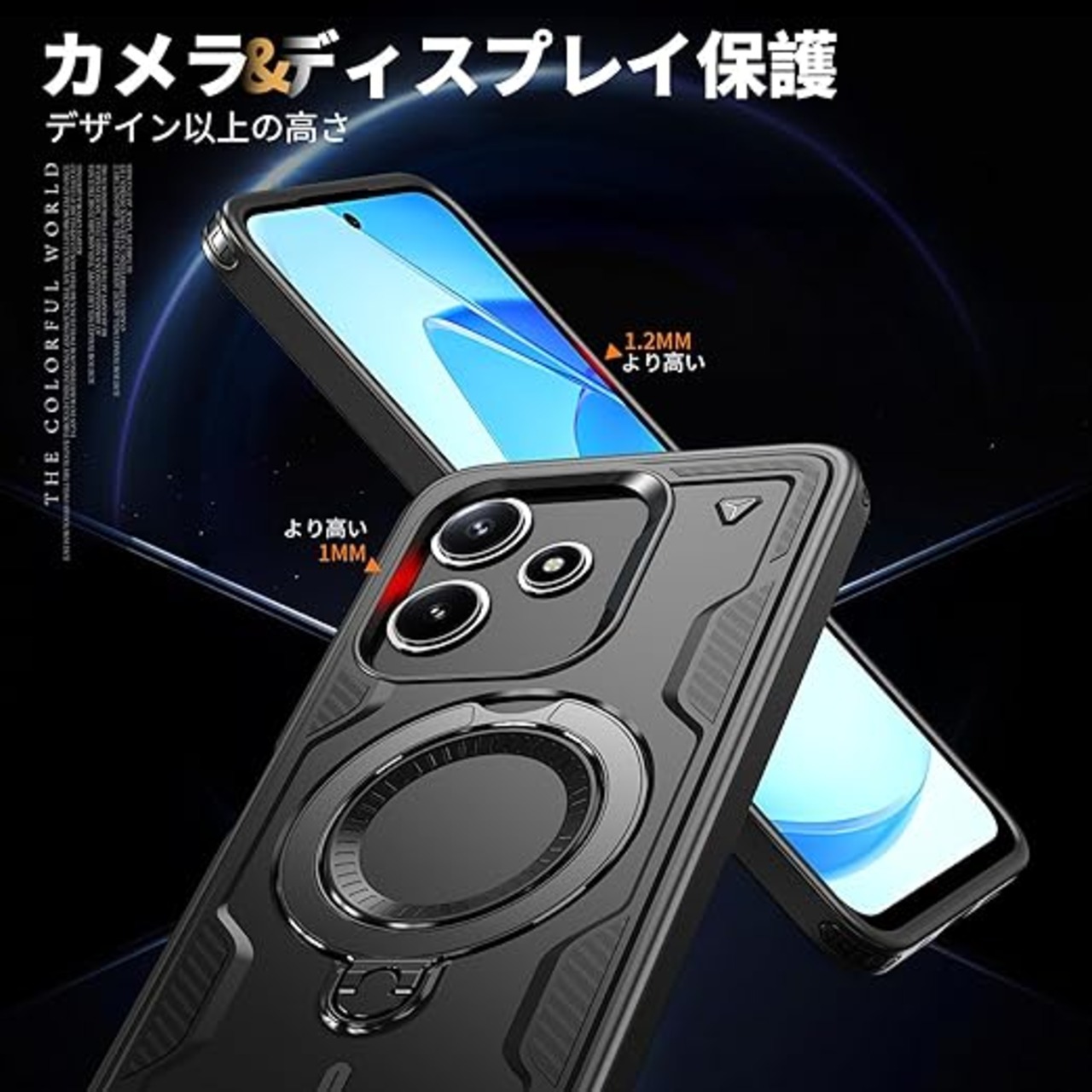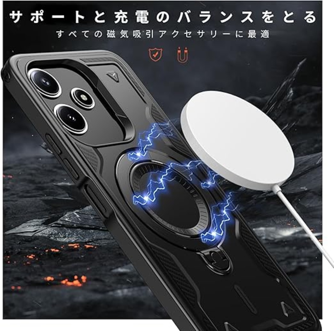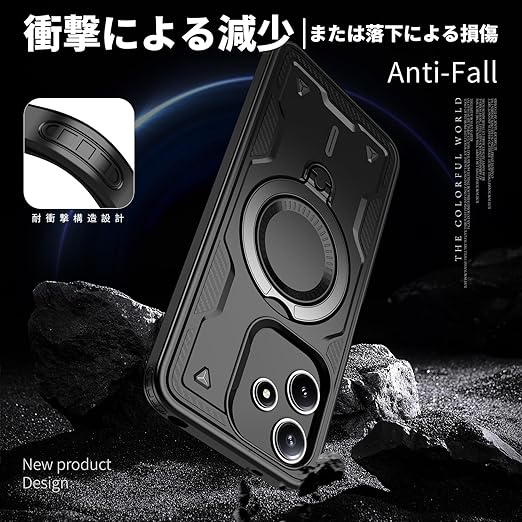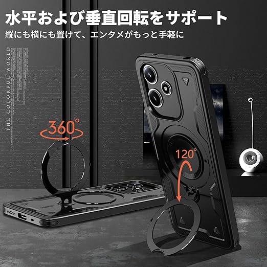 Xiaomi Redmi 12 5G 用 ケース 耐衝撃 スタンド付き Magnetic対応 Redmi 12 5G カバー リング TPU+PC ワイヤレス充電 米軍MIL規格取得 スタンド機能 (黒 ブラックい)117-XM125G-01 a