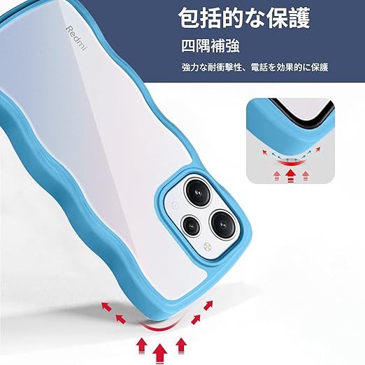 Xiaomi Redmi 12 5G ケース クリア 全面保護 シャオミ リドミ12 5G スマホケース 人気 かわいい XIG03 カバー 透明 耐衝撃 滑り止め 薄型 軽量 TPU レンズ保護 おしゃれ 落下防止 ワイヤレス充電対応 (ブルー) a