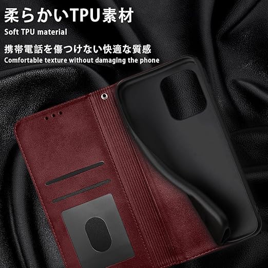 【高品質の素材】シェルは高品質なPU合成皮革を使用し、シンプルな外観とパターンで、効果的に摩擦を増加させます。インナーシェルはソフトなTPU素材で、手触りがよく、取り外しも簡単です。ケース全体が偶発的な衝撃による損傷から携帯電話を効果的に保護します。