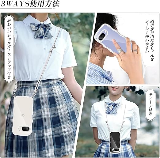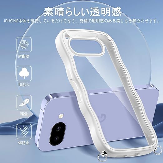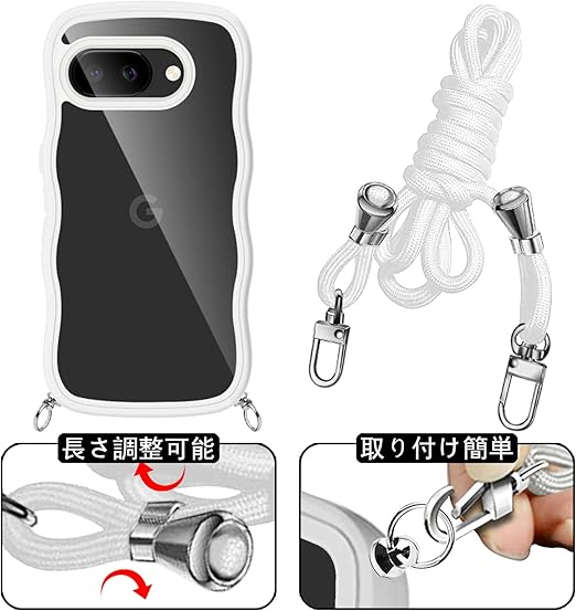 Google Pixel 9A ケース クリア ショルダー グーグル ピクセル9a カバー うねうね 透明 人気 かわいい 耐衝撃 スマホケース ストラップ付き 取り外し可能 長さ調整可能 首かけ 肩掛け 薄型 軽量 TPU ワイヤレス充電対応(ホワイト) a