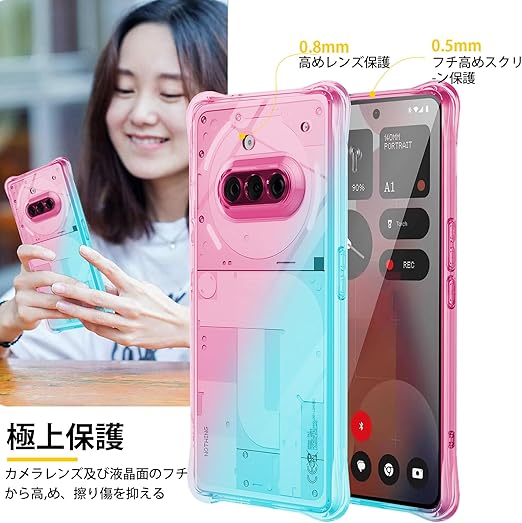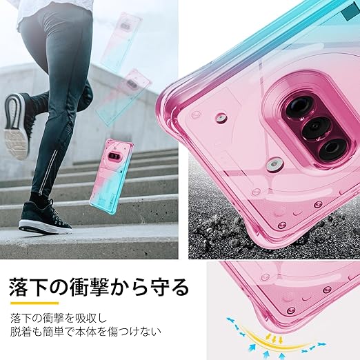 For Nothing Phone 3a ケースクリア TPU 薄型 軽量 グラデーション色 ケース 耐衝撃 米軍MIL規格取得 滑り止め 黄変防止 防塵 一体型 人気 携帯カバー(ピンクグリーン) a