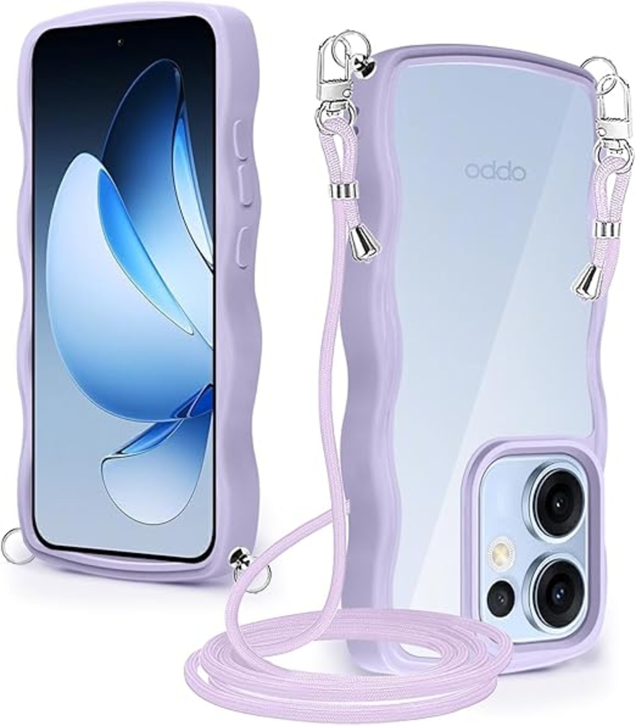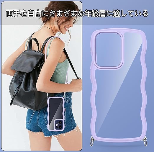 OPPO Reno13 A ケース クリア ショルダー 耐衝撃 かわいい 人気 透明 オッポリノリノ13A カバー スマホケース 薄型 軽量 首かけ 肩掛け 縄掛けケース ストラップ付き 取り外し可能 長さ調整可能 ワイヤレス充電対応(パープル) a