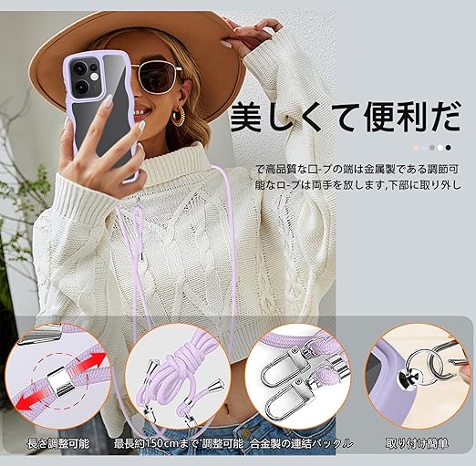 【実用・縄掛けケース】ショルダーストラップ付き、取り付けや長さ調整が非常に簡単。特にポケットのない服が多いので、外出時に肩にかけるととても便利です。ショルダーストラップは取り外し可能なので、それを使わなくても簡易的なスマホケースとして使用す