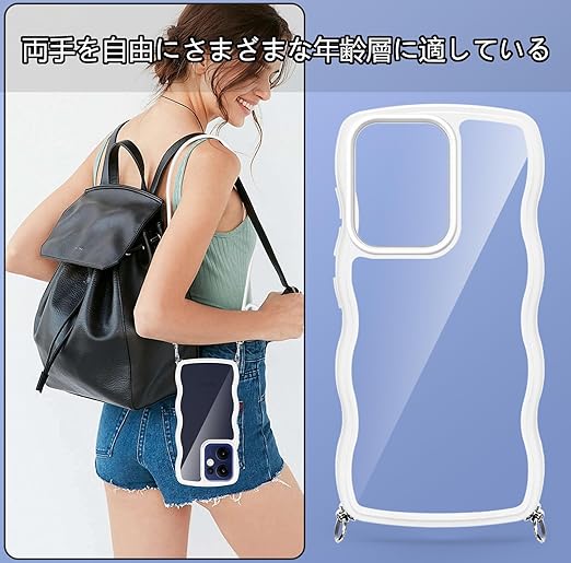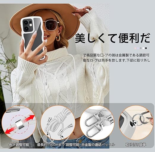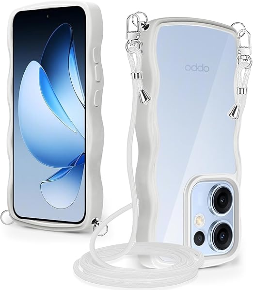 OPPO Reno13 A ケース クリア ショルダー 耐衝撃 かわいい 人気 透明 オッポリノリノ13A カバー スマホケース 薄型 軽量 首かけ 肩掛け 縄掛けケース ストラップ付き 取り外し可能 長さ調整可能 ワイヤレス充電対応(ホワイト) a