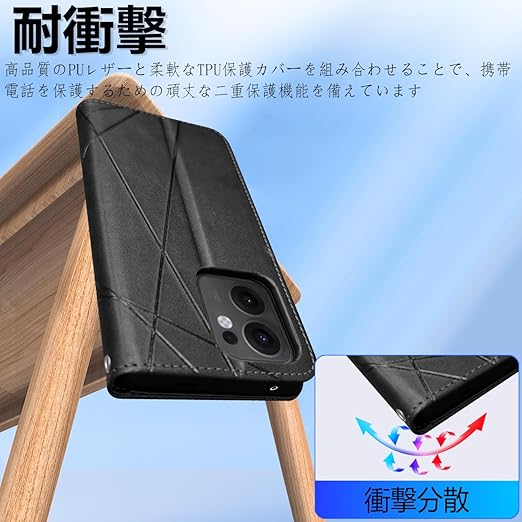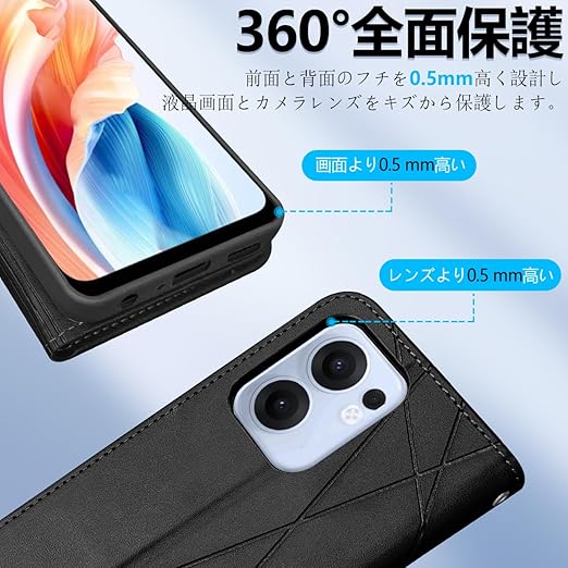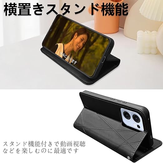 OPPO Reno13 A ケース 手帳型 オッポリノ13a カバー 財布型 スマホケース カード収納 全面保護 耐衝撃 PUレザー マグネット開閉 スタンド機能 携帯カバー (ブラック) a