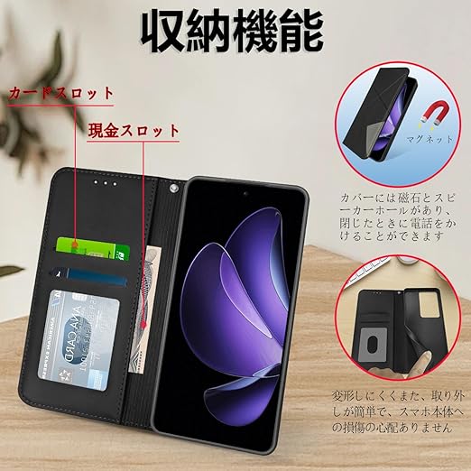 【専用デザイン】OPPO Reno13 A 専用設計手帳型PUレザーケースです。内蔵TPUケースはカメラ穴、スピーカー穴、電源、音量ボタン箇所、充電箇所すべて端末専用設計で加工を行っております。ケースをつけたままですべての操作が可能です。