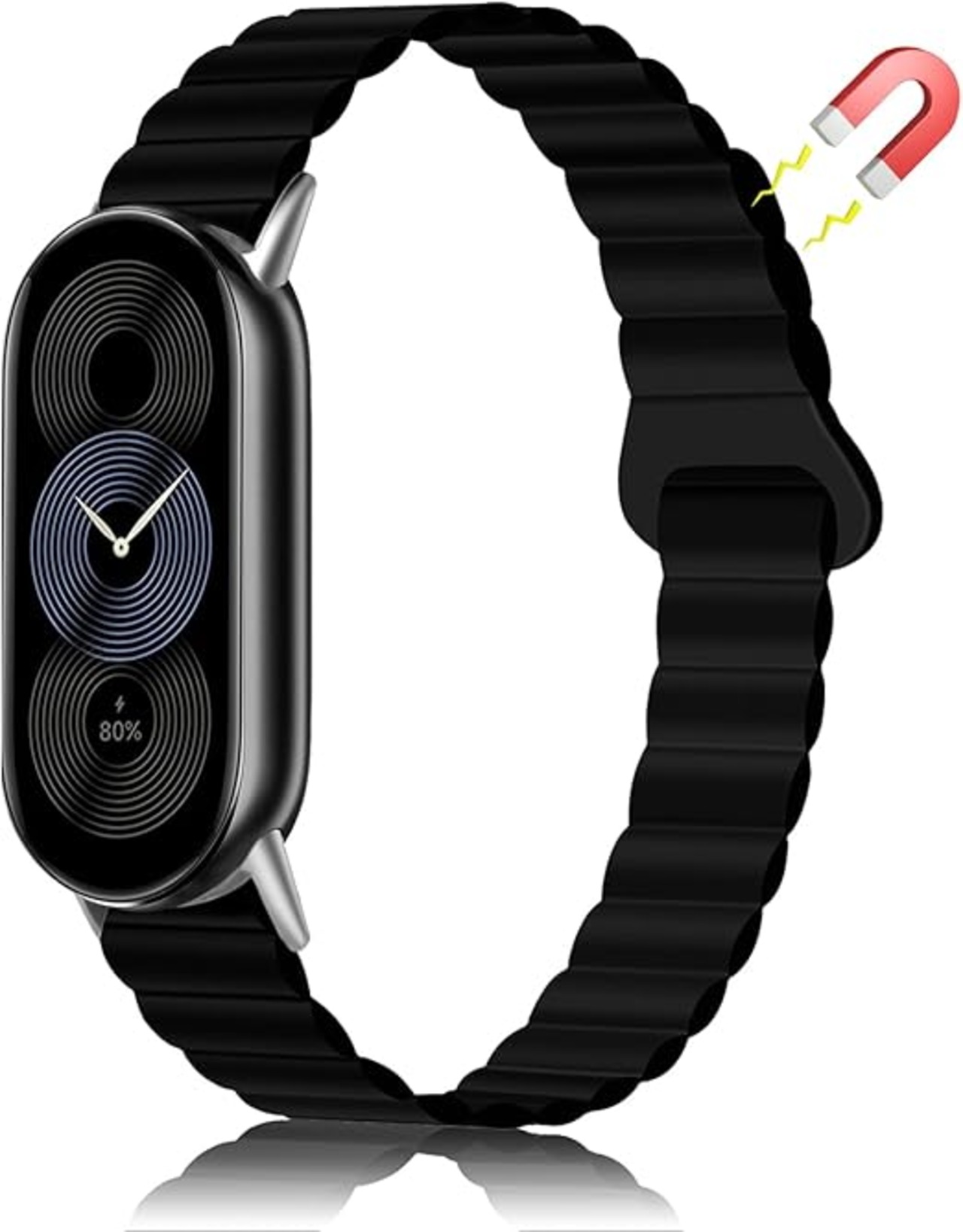 LuFiYa 磁気 シリコン バンド Xiaomi Smart Band 10 / Xiaomi Smart Band 9 / Mi 8 用 シャオミ スマートウォッチ 時計ベルト 磁気 シリコン 交換ストラップ 固定バックル付き 腕時計 ベルト (ブラック) a