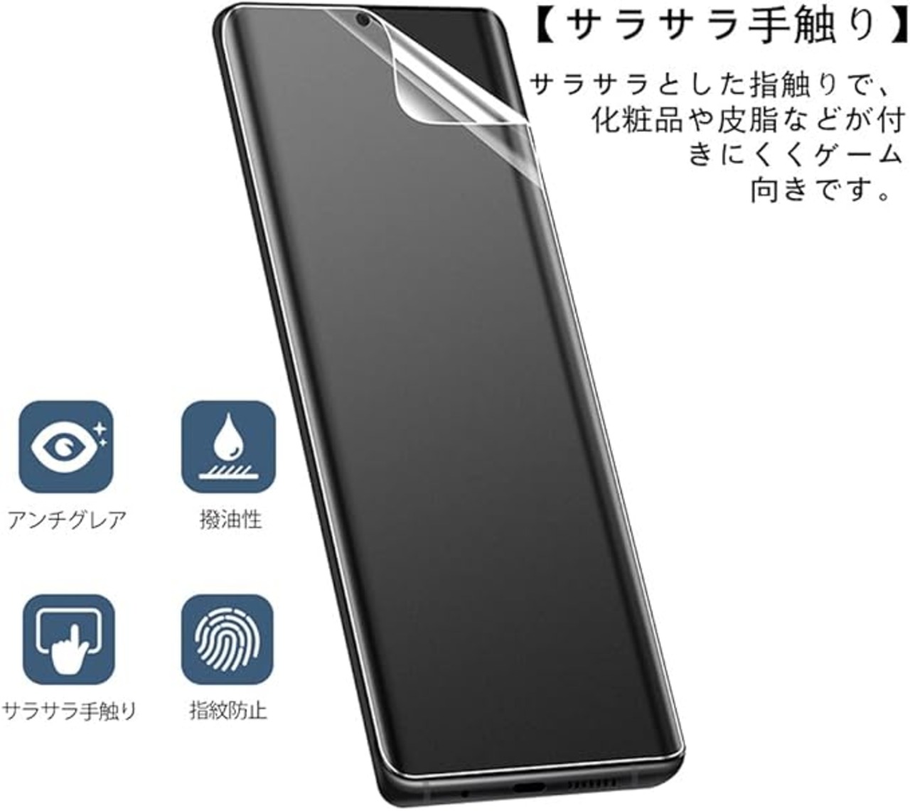 【アンチグレア加工】反射防止コーティングの加工で、ディスプレイの表面に太陽光や蛍光灯などの反射を抑えます。視認性を向上させて画面が見えやすくなり、目の負担を軽減できます。更にサラサラ手触りで指紋の跡が非常に残りにくく、指のすべり