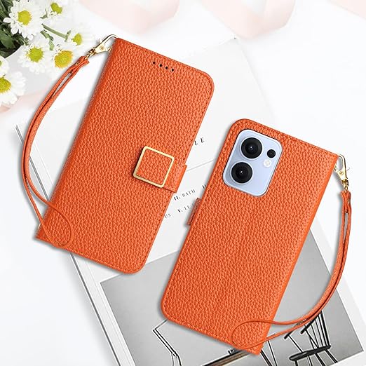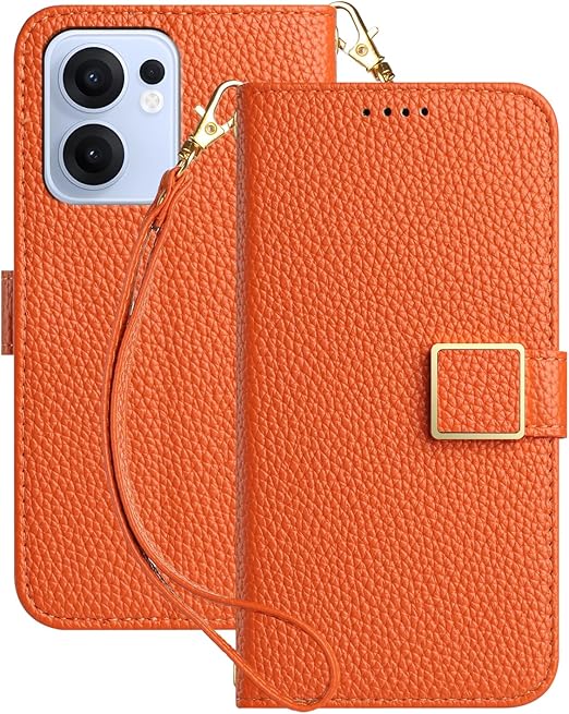Deeaar OPPO Reno13 A ケース手帳型 人気 スマホケース オッポリノ13a 財布型 カバー おっぽ りの13a カードポケット付き 軽量 薄型 全面保護 カード収納 スタンド機能 横置きスタンド機能 高級PUレザー 上質な手触り 擦り傷防止 ケース (OPPO Reno13 A 6.7 inch対応) - オレンジ a