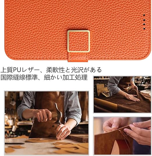 【耐衝撃性】耐熱性と柔軟性を誇るPUレザーから作られていて、滑りにくく、指紋、油分などもつきにくく、手帳型な