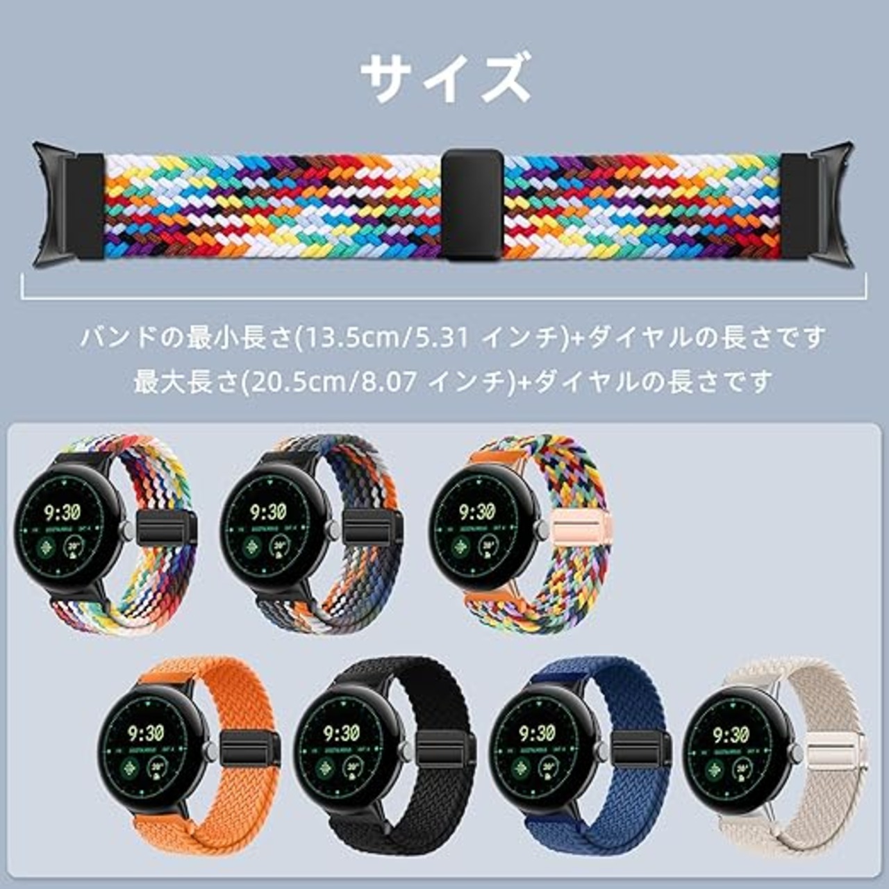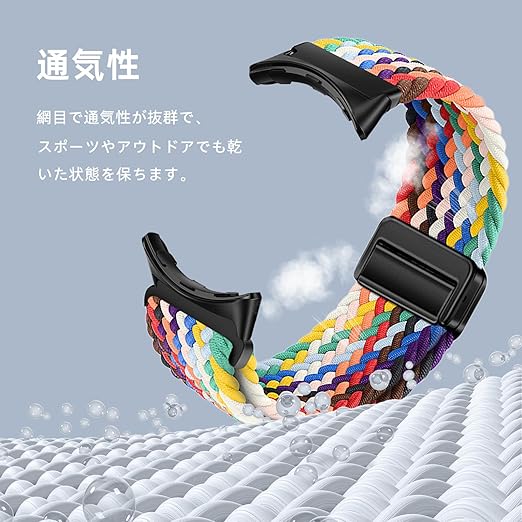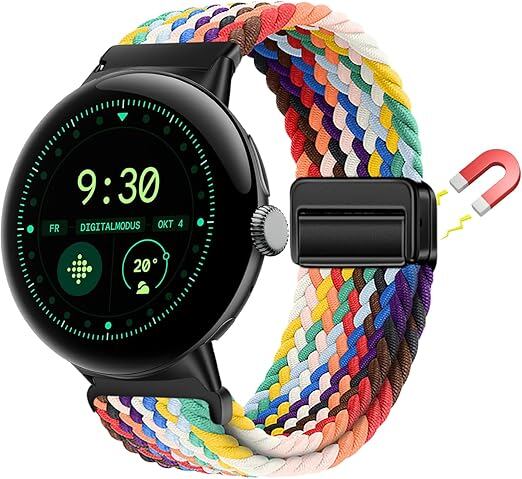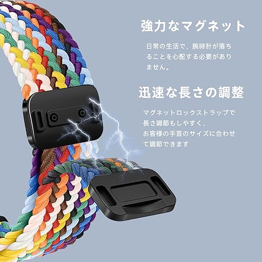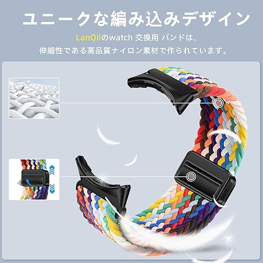 [LanQii] バンド 用の Google Pixel Watch 3 45mm 対応 交換ベルト ナイロン バンド 編み込み 磁気吸着取り付け スポーツ用 弾力性 長さ無段階調整 柔軟 防汗 通気 夏向け 簡単取り付け 用の Google Pixel Watch 3 45mm 対応 レインボー色 a