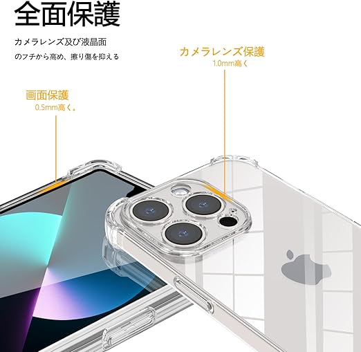 高い透明度:透き通った99%高い透明度を持ちます;携帯電話を美しく守る、耐衝撃スマホケース;裏面は透明の為、本体の色をそのまま映し出すことができ端末のオリジナルカラーを損ねません