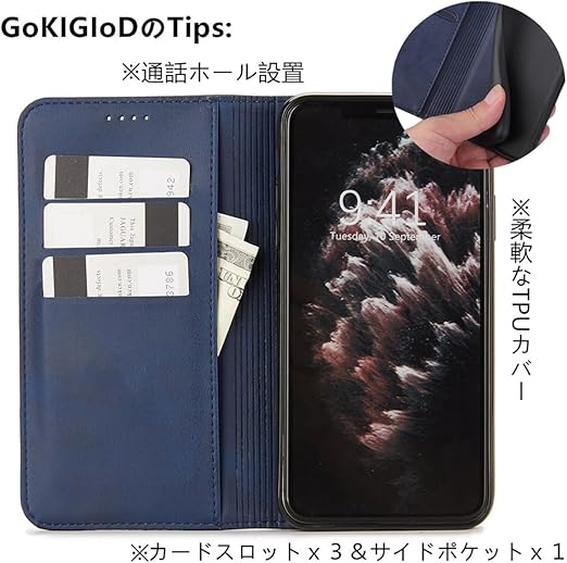 Motorolaに適合する Moto G64 5G / G64Y 5G ケース 手帳型 全適用 モトG64y 手帳型カバー MotoG64 5G SIMフリー 手帳 MotoG64y case 【GoKIGIoD】 財布型 携帯カバー 磁石付き 留め具なし 耐衝撃 マグネット カード入れ スタンド機能 レトロ ネイビー a
