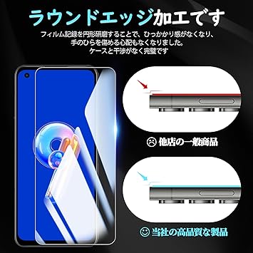 【対応機種】ASUS ZenFone 9 (AI2202)専用ガラスフィルム。【注意】この電話の画面の端は湾曲しているため、保護フィルムのサイズが丁度良い場合、しっかりと貼り付けられず、白いエッジやシェルとの干渉などの問題があるため、保護フィルムは画面よりも小さいです。