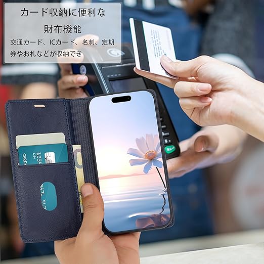 ・高品質のPUレザーを使用しており、柔らかく手触りが良いだけでなく、長時間の使用でも色落ちや劣化を防ぎ、天然皮革のような高級感と柔らかさを持ちながら、耐久性にも優れています。環境にも優しく、さらに耐水性や耐汚れ性も備えています。インナーケースは柔らかいソフトTPU素材を採用して、スマートフォンに完全にフィットするように設計されていま