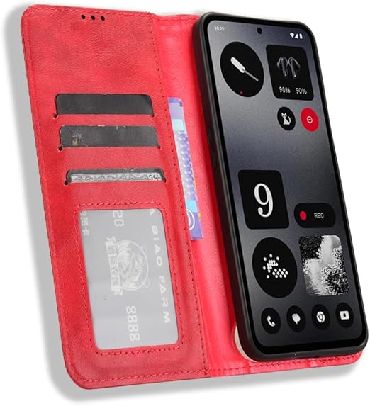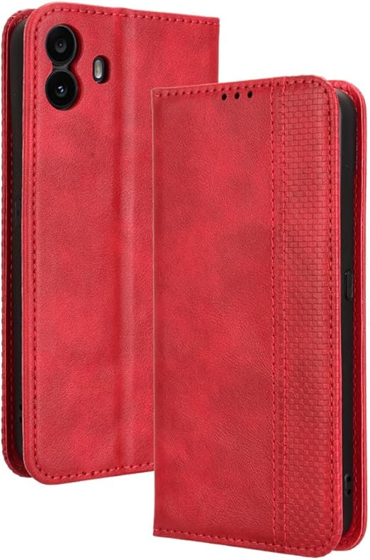 For Nothing CMF Phone 1 ケース 手帳型 カバー 財布型 【HNWEIWEI】カードポケット付き 高級 PUレザー 手触りが良い マグネット開閉 落下防止 衝撃吸収 耐摩擦 360度保護 スタンド機能付き マグネット式 カード収納 スタンド機能(レッド) a