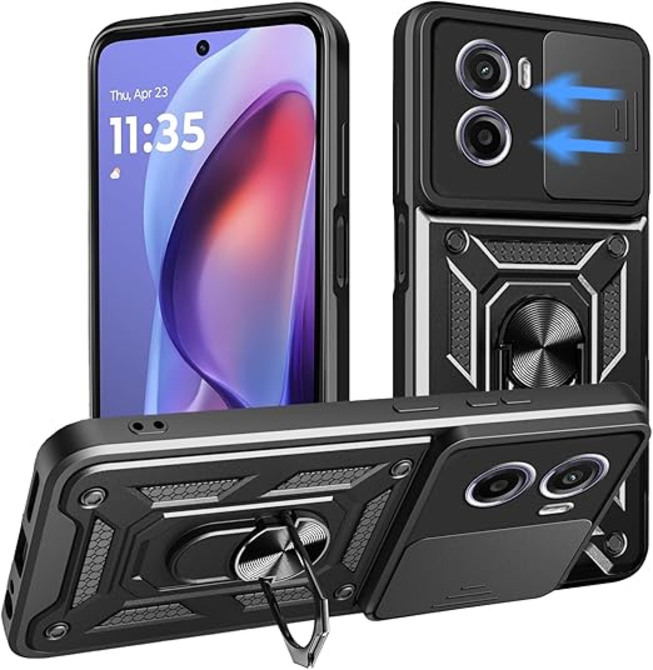 【スライドカメラカバーデザイン】ユニークなデザインのMotorola Moto G05/Moto E15 4Gケース、カメラレンズスライダー保護デ