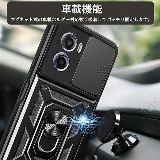 For Motorola Moto G05/Moto E15 4G ケース リング付き Moto G05 カバー スタンド機能 360回転 カメラレンズ保護 車載ホルダー対応 ストラップホール付き 耐衝撃 落下防止 軽量 指紋防止 滑り止め (ブラック) a