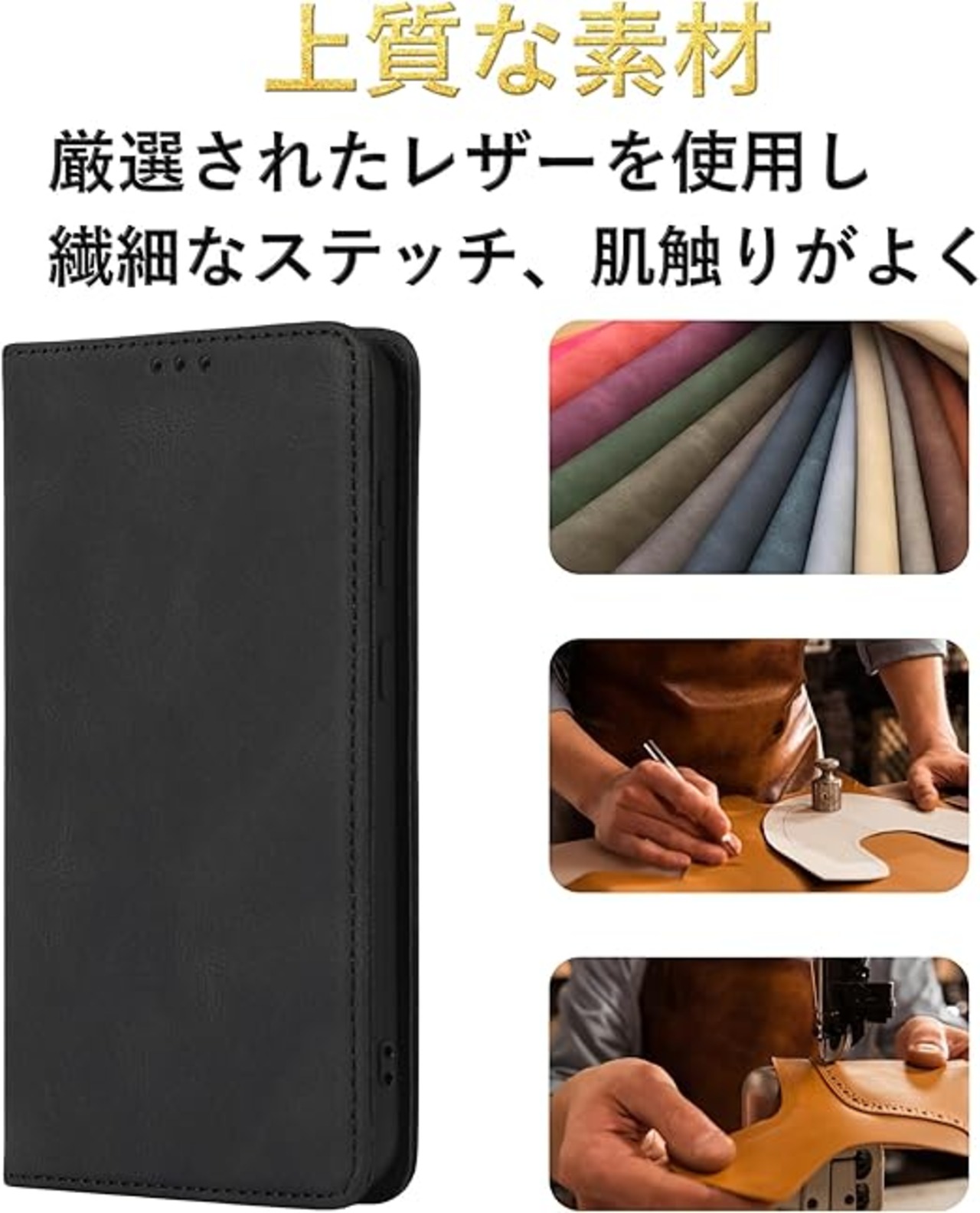 【マグネット式】このケースはマグネットを内蔵しており、面倒なマグネットクラスプを使用せず、開閉がとても簡単です、ミニマルデザイン、ファッションセンスを高めます。