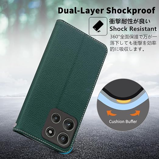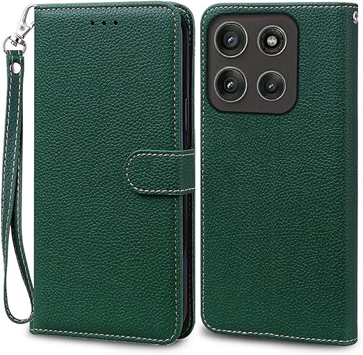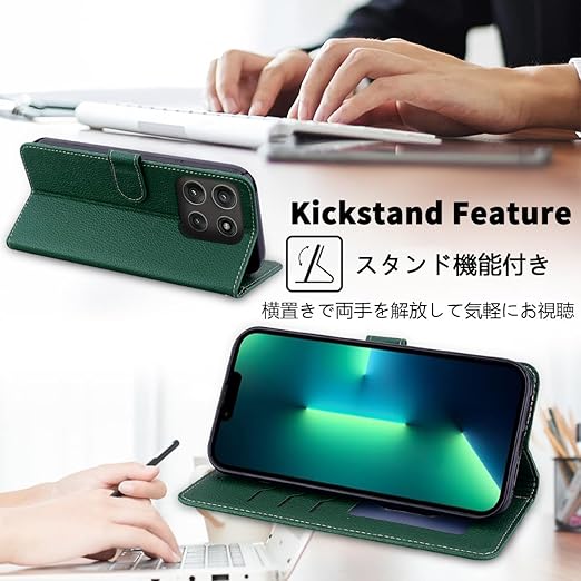 MOTOROLA用 Moto G66J 5G ケース 手帳型 通用 Moto G66Y 5G ストラップケース モトローラ motoG66J motoG66Y SIMフリー ワイモバイル 手帳 携帯カバー 耐衝撃 ストラップ付き 手帳 適用 case Cobeimisr ライチ紋 軽量 カードケース ストラップ スマホケース ダーク グリーン a