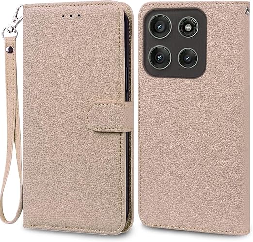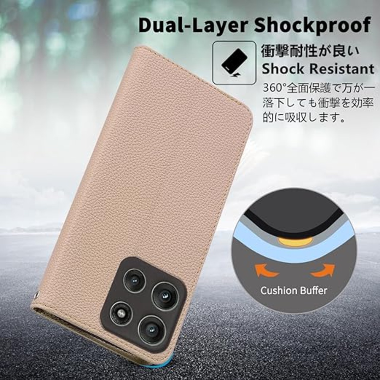 MOTOROLA用 Moto G66J 5G ケース 手帳型 通用 Moto G66Y 5G ストラップケース モトローラ motoG66J motoG66Y SIMフリー ワイモバイル 手帳 携帯カバー 耐衝撃 ストラップ付き 手帳 適用 case Cobeimisr ライチ紋 軽量 カードケース ストラップ スマホケース ベージュ a