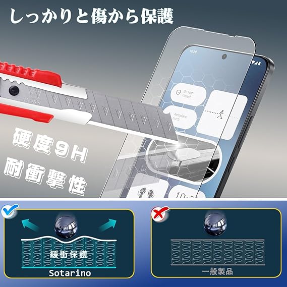 【硬度9H・耐衝撃】日本旭硝子素材を採用し、表面硬度9Hの最高強度のガラスを使用しています。万が一スマホが落ちてガラスが割れた場合でも、ガラスの破片が飛び散りにくい設計です。飛散防止加工が施されており、ガラスの破片から守ります。