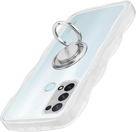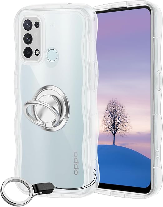 OPPO Reno5 A ケース クリア ウェーブ リング付き TPU波状のバンパー 透明 スマホケース かわいい うねうね オッポ Reno5A ウェーブ デザイン 可愛い 韓国 女性用 薄型 人気 おしゃれ 耐衝撃 ストラップホール付き(クリア) a