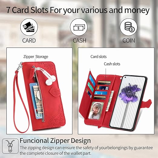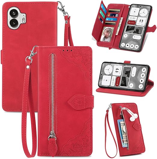 for Nothing phone 2a ケース 手帳型 ビジネスフリップノートレザーケースシンプルなレトロなファッション携帯電話ケース防水と汚れた携帯電話ケース多機能財布収納付きスタンド携帯電話シェルPUレザー保護カバー耐久性のある摩擦(赤) a