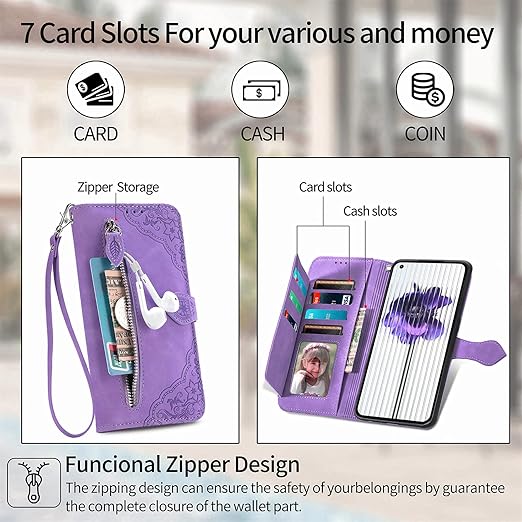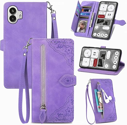 for Nothing phone 2a ケース 手帳型 ビジネスフリップノートレザーケースシンプルなレトロなファッション携帯電話ケース防水と汚れた携帯電話ケース多機能財布収納付きスタンド携帯電話シェルPUレザー保護カバー耐久性のある摩擦(パープル) a