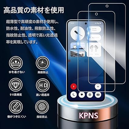 KPNS ガラスフィルム Nothing Phone 3A 用 (2枚)ガラスフィルム + (2枚)カメラフィルム日本旭硝子素材採用 全面 保護フィルム 強化ガラス フィルム保護フィルム a