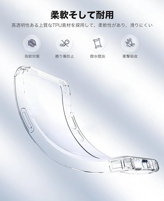 【驚くほどの透明度・黄変防止】高級熱可塑性ポリウレタン(TPU)素材を採用することで、従来品と比べてより透き通った透明感を保つことができ、長期間経ってもケースが黄変しにくく、スマホ本来の外観を存分にアピールすることでできます。