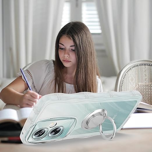 OPPO A79 5G ケース クリア ウェーブ リング付き TPU波状のバンパー 透明 スマホケース かわいい うねうね オッポ A79 5G ウェーブ デザイン 可愛い 韓国 女性用 薄型 人気 おしゃれ 耐衝撃 ストラップホール付き(OPPO A79 5G-クリア) a