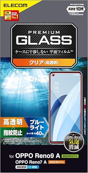 エレコム OPPO Reno9 A / OPPO Reno7 A (OPG04) ガラスフィルム 指紋認証対応 ブルーライトカット 硬度10H 指紋防止 エアーレス クリア PM-O221FLGGBL a