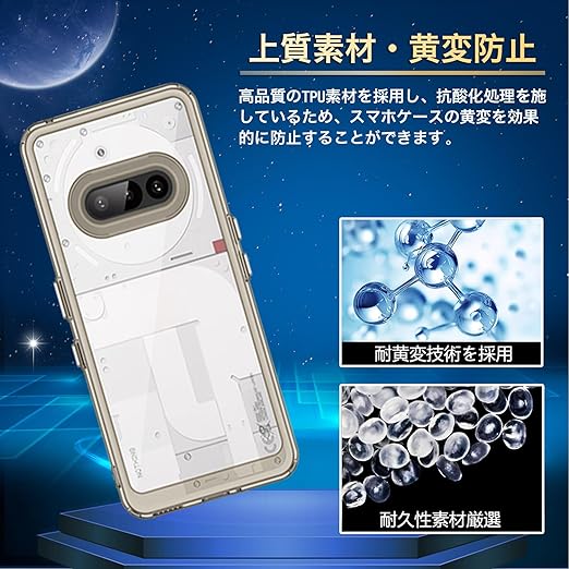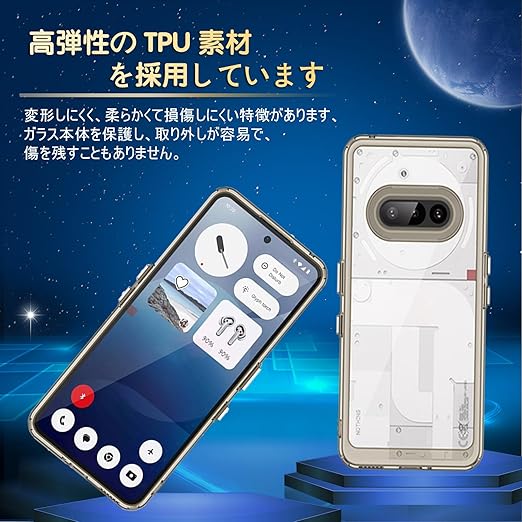 Nothing Phone 3a 保護ケースはTPU+PC素材を採用し、卓越した耐衝撃性能と落下防止機能を備えています。落下時の衝撃を多層構造で効果的に吸収し、本体の重要部品を確実に保護します。