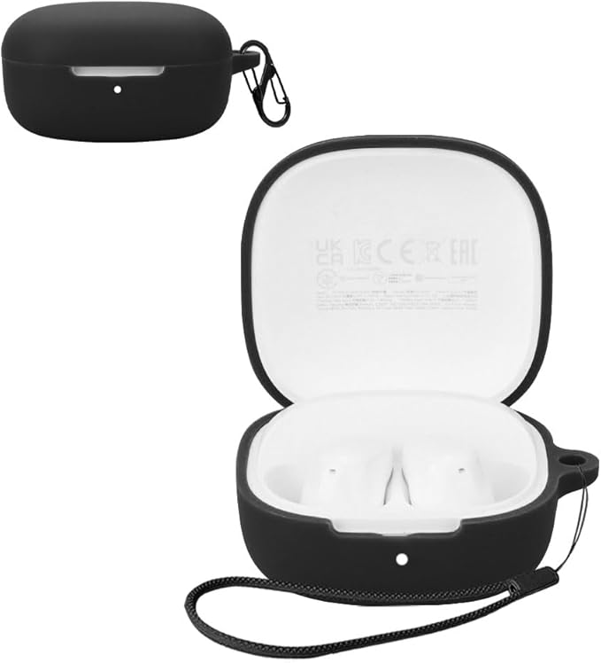 For Xiaomi ワイヤレスイヤホン Redmi buds 6 Play ケース [HVUYAL] 紛失防止用のフックを搭載した 軽量 キズ防止 防塵 傷つきにくい 柔らかなシリカゲルのスポーツクールなデザイン 衝撃 吸収 スリム ソフト ケースカバー 落下防止保護(ブラック) a