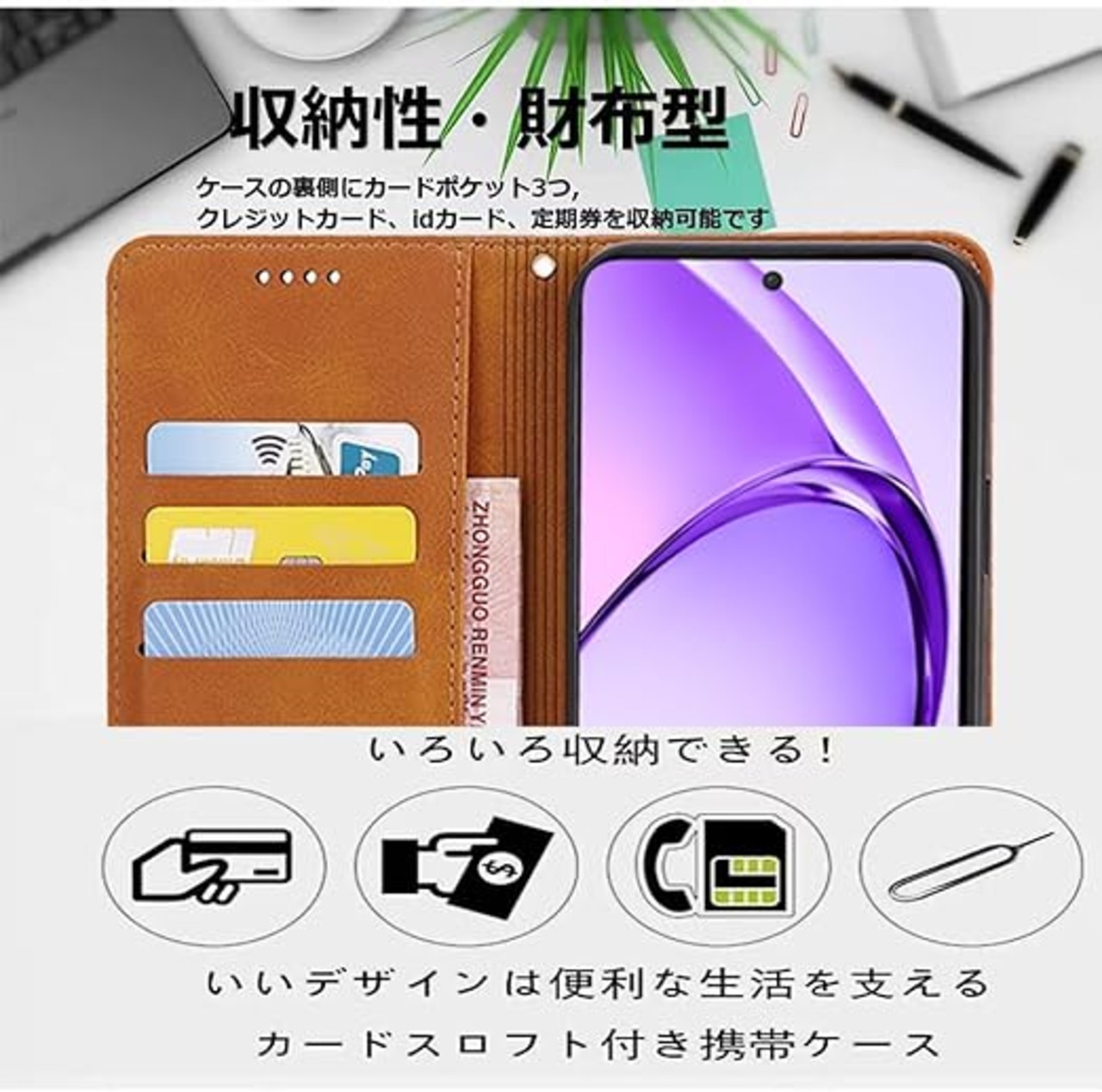 対応OPPO A3 5G / A3 Pro 5G 手帳型 シェルノートブックタイプ保護カバーノートブックカード収納側マグネットブラケット機能互換性のある耐衝撃性軽量モダンシンプルファッションPUレザー折りたたみ式フル保護カバー男性と女性のスマートフォンケース用(カーキ色) a