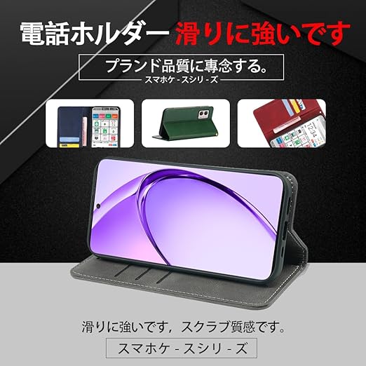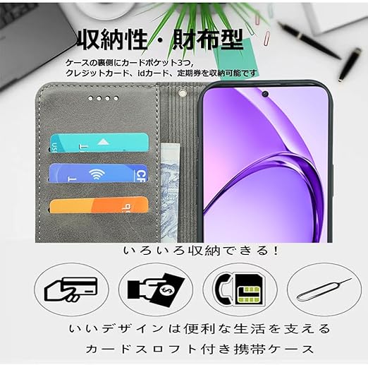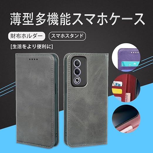 対応OPPO A3 5G / A3 Pro 5G 手帳型 シェルノートブックタイプ保護カバーノートブックカード収納側マグネットブラケット機能互換性のある耐衝撃性軽量モダンシンプルファッションPUレザー折りたたみ式フル保護カバー男性と女性のスマートフォンケース用(グレー) a