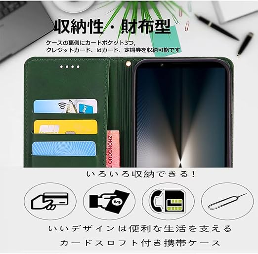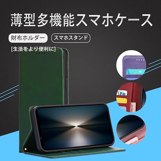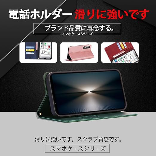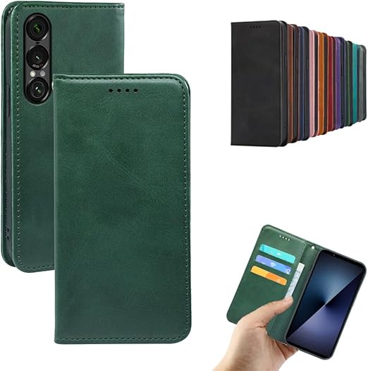 対応Xperia 1 VII SO-51F 手帳型 シェルノートブックタイプ保護カバーノートブックカード収納側マグネットブラケット機能互換性のある耐衝撃性軽量モダンシンプルファッションPUレザー折りたたみ式フル保護カバー男性と女性のスマートフォンケース用(ダークグリーン) a