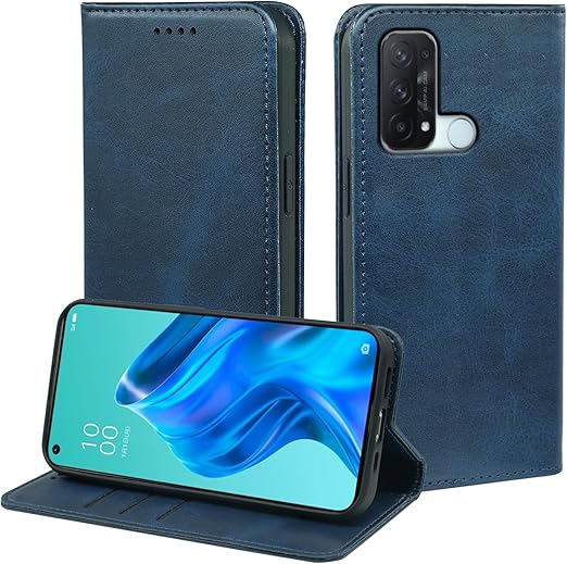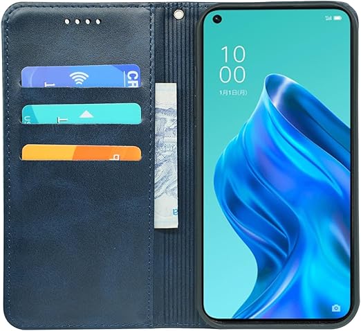 に適用するOPPO Reno5 A ケース 手帳型 ノートブック型携帯電話保護カバー多機能携帯電話ホルスター (ダークブルー) a