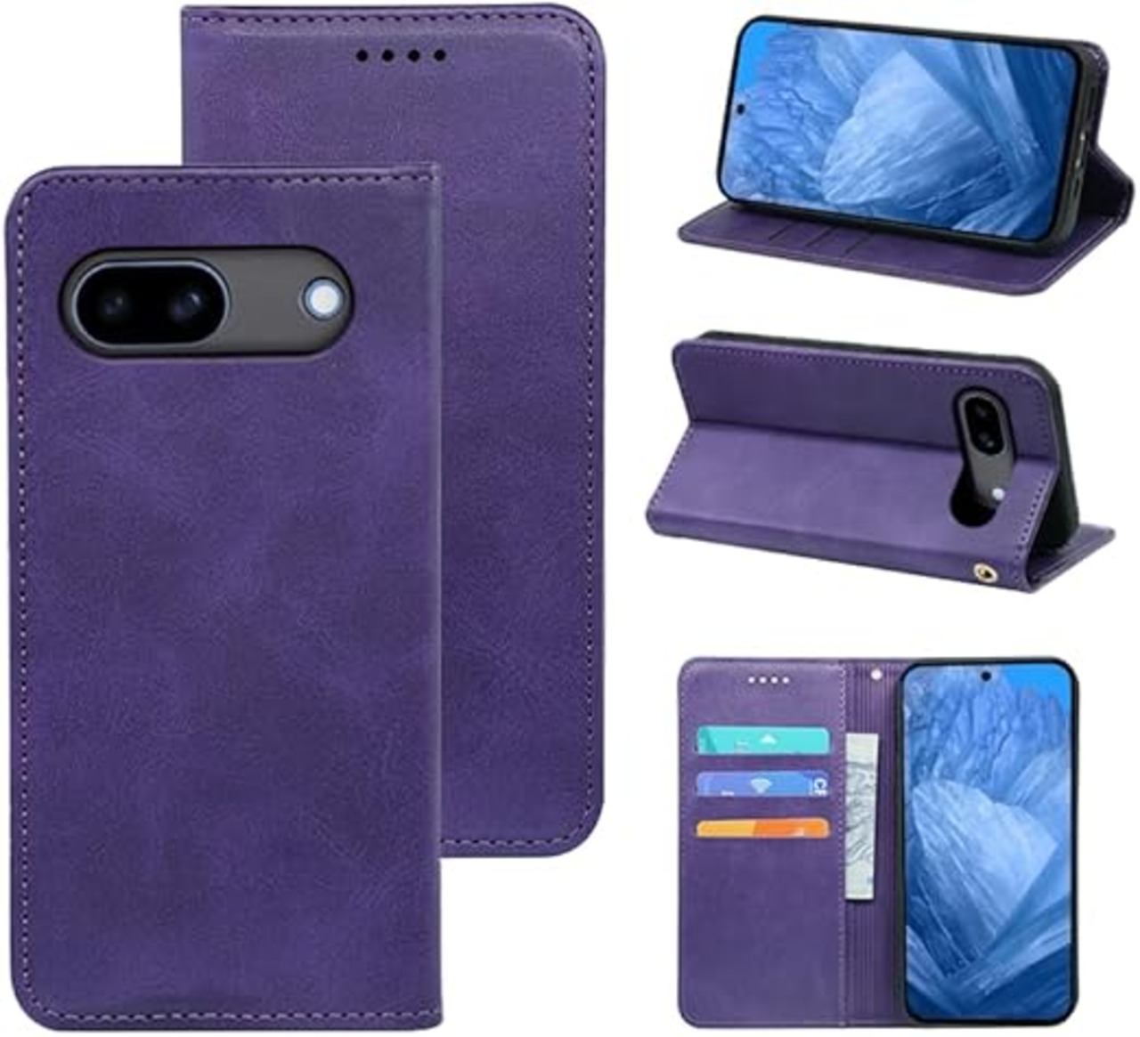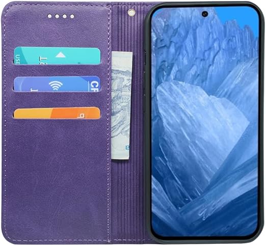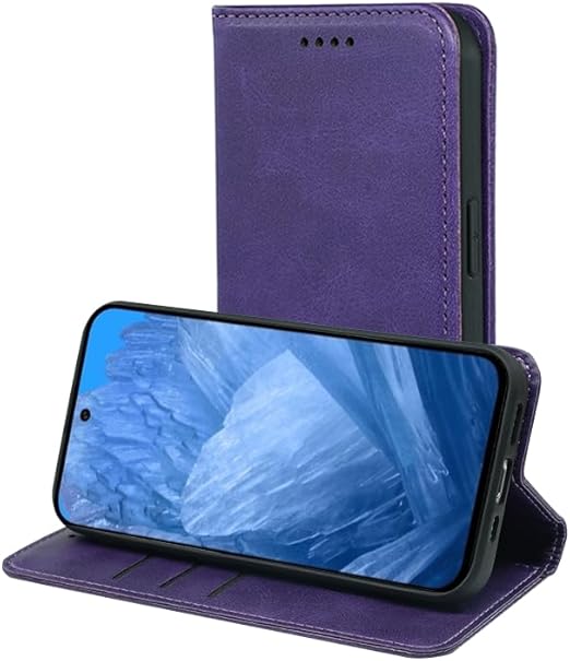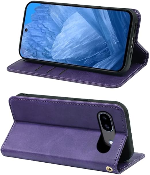 に適用するGoogle Pixel 8A ケース 手帳型 ノートブック型携帯電話保護カバー多機能携帯電話ホルスター財布携帯電話ホルダーバンプパターンテクスチャ耐久性摩擦耐性携帯電話ケース男性と女性に適した多色オプション (パープル) a