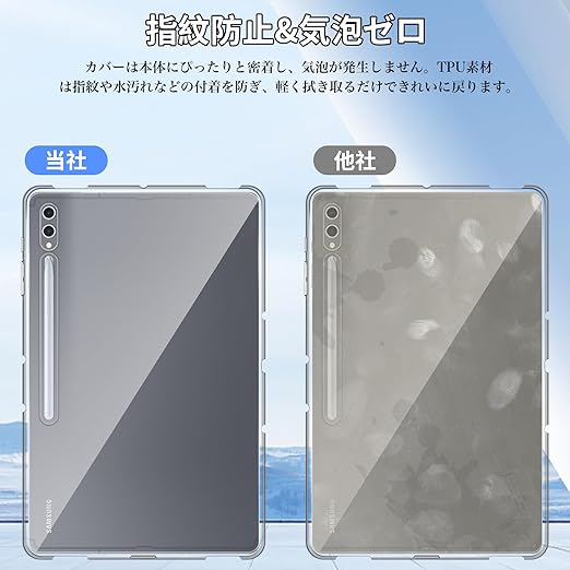 【透明感】黄色くなりにくい特殊なTPU素材を使用して透明感を保ち、Galaxy Tab S10 Plusのデザインを可能な限り活かした透明なデザインで、