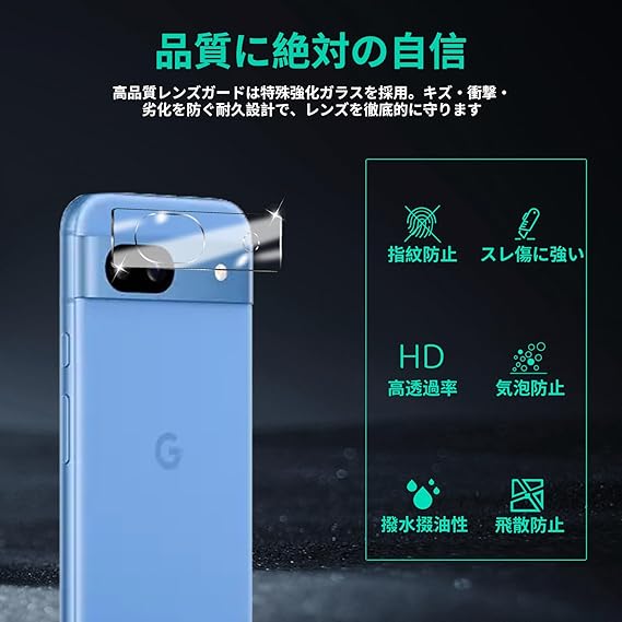 【3枚セット】対応 Google Pixel 8A カメラ保護 Pixel 8A レンズ 保護カ 耐衝撃 キズ防止指紋防 露出オーバー防止 気泡ゼロ 高透過率 防滴 硬度9H 防塵 貼り付け簡単 a