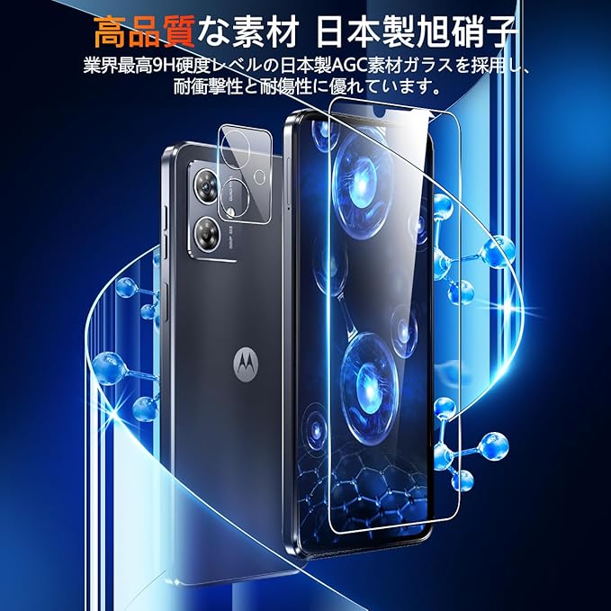 【飛散防止可能の9H硬度】 対応 Motorola Moto G64 ガラスフィルムとレンズ保護フィルムはすべて旭硝子で作られており、スマホ保護フィルムの中で最高レベルの9H硬度に達しています。手にフィットして持ちやすく滑りにくいので落ちにくいです。万が一落ちてもフィル