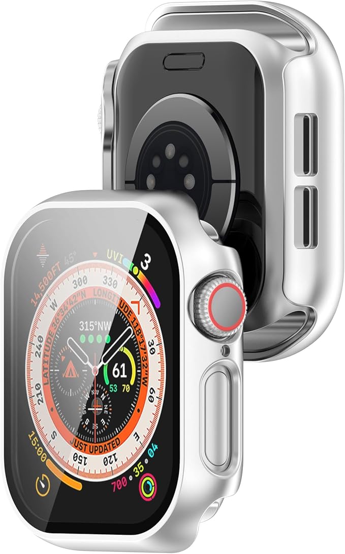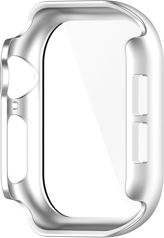 For Apple Watch Series 10 42mm 用 ケース PC+ガラス 一体型 軽量 全面保護 耐衝撃 傷防止 対応 apple watch series 10 全面カバー 高透過率 傷防止 保護ケース(シルバー) a