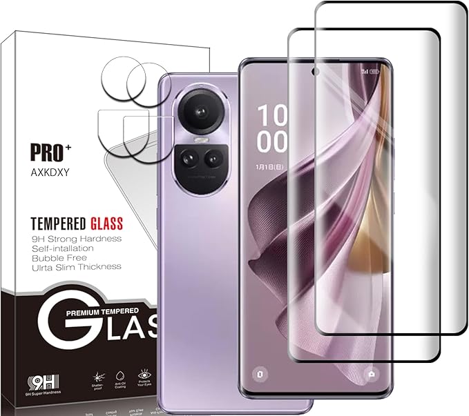 【2+2枚セット】OPPO Reno10 Pro 5G 用の ガラスフィルム(2枚) + レンズ保護フィルム (2枚) フィルム 強化ガラス液晶保護フィルム液晶 ガラス ケース フィルム 硬度9H 3D曲面 スクラッチ防止 飛散防止 撥水撥油 指紋防止 貼り付け簡単 OPPO Reno10 Pro 5G 用の a