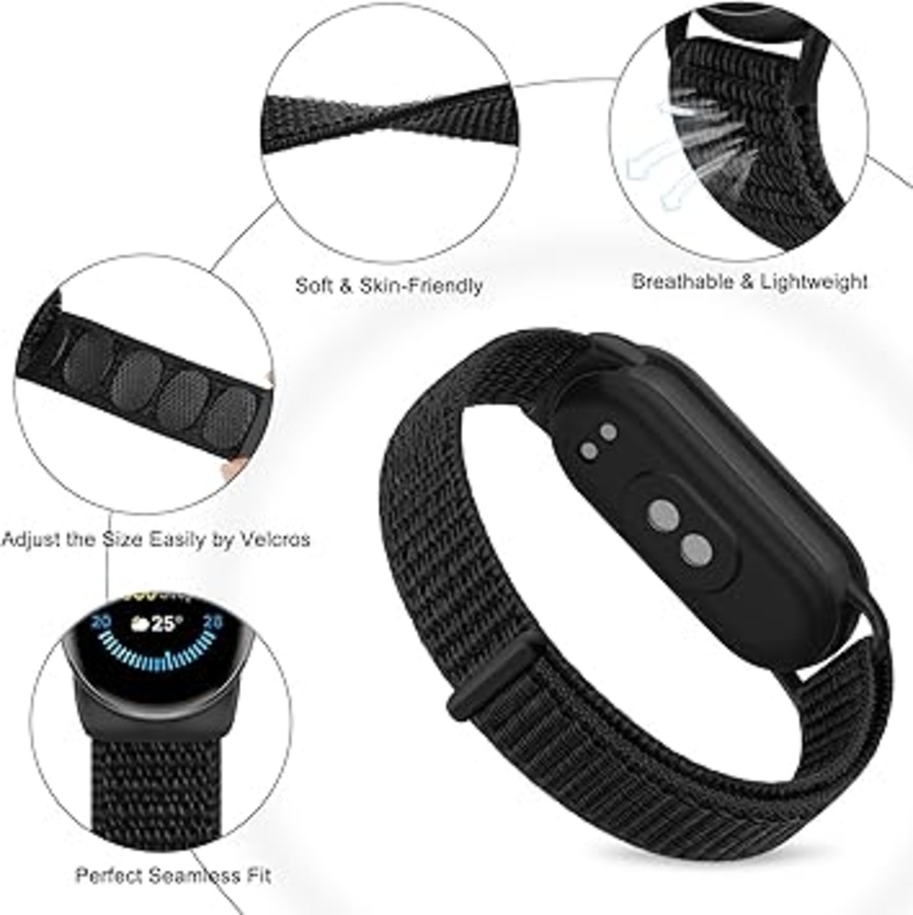 [Wanme] ナイロン時計交換バンド Xiaomi Smart Band 10/9/8 対応 速乾 軽量 快適なフ 女性男性用 調節可能 通気性 交換用リスト Mi Band 9/8 用 a